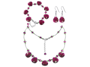 Sterling Silver Fuschia Crystal Bracelet Earrings with 24 inch Necklace Jewelry Set Made with Swarovski Elements