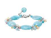 Genuine Dyed Blue Quartz with Swarovski Crystal and Pearl Bracelet in Sterling Silver 7.5 Inch