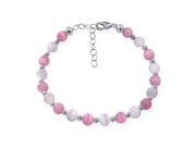 Sterling Silver 6mm Wide Pink and White Cat Eye Beads Bracelet 7 inch Made with Swarovski Elements