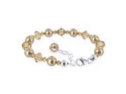 Sterling Silver Bronze Imitation Pearl and Crystal Bracelet 7 inch Made with Swarovski Elements