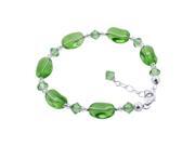 Sterling Silver Green Agate and Crystal 7.5 to 9 Inch Bracelet Made with Swarovski Elements